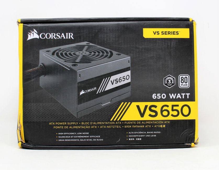 A boxed as new Corsair VS Series VS650 650W 80 Plus ATX Power Supply (Box opened).