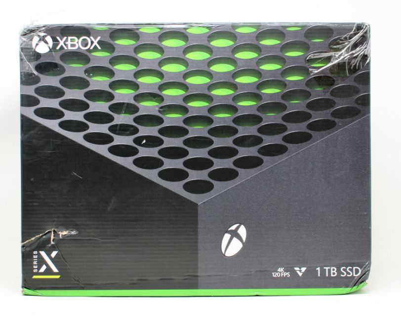 A boxed as new Xbox Series X (1TB SSD) games console in black (box damaged) (box opened to check contents)
