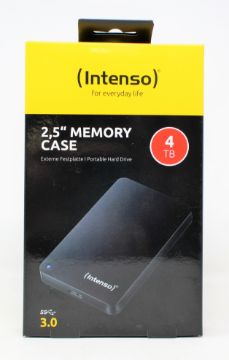 Two boxed as new Intenso 4TB (2.5" memory case) portable hard drives in black.