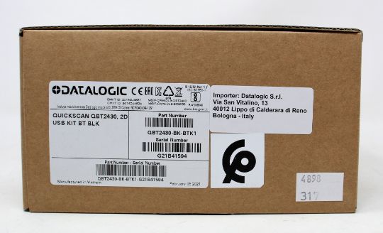 A boxed as new Datalogic QuickScan QBT2430 Barcode Scanner Kit (P/N: QBT2430-BK-BTK1).