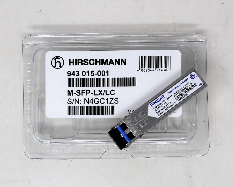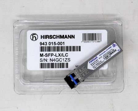 An as new Hirschmann Finisar 943 015-001 M-SFP-LX/LC SFP Fibreoptic Gigabit-Ethernet Transceiver Module.