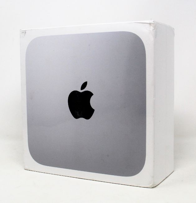 A boxed as new Apple Mac Mini (2020) computer in silver with Apple M1 CPU, 8GB RAM, 256GB SSD. (Some minor damage to box corners).
