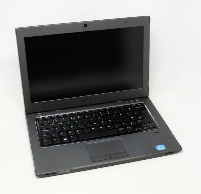 A used 13" Dell Vostro 3360 laptop in grey/silver with intel i3-3227U 1.9GHz CPU, 8GB RAM, 500GB SSD. Windows 10 Installed. (power adaptor included).