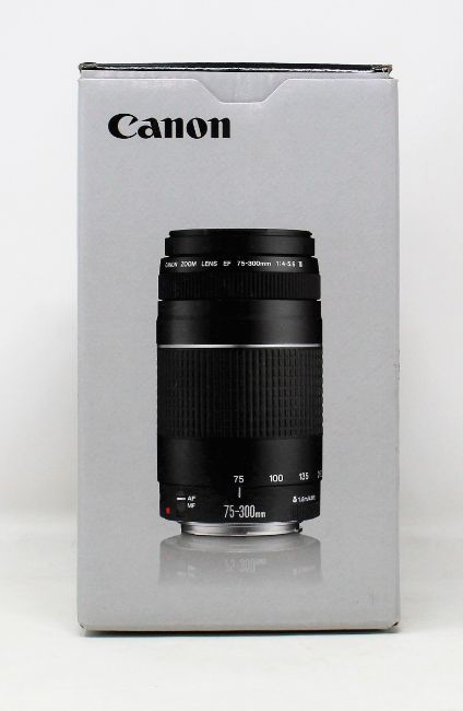 A boxed as new Canon EF 75-300mm f/4-5.6 III Telephoto Zoom Lens for Canon SLR Cameras.