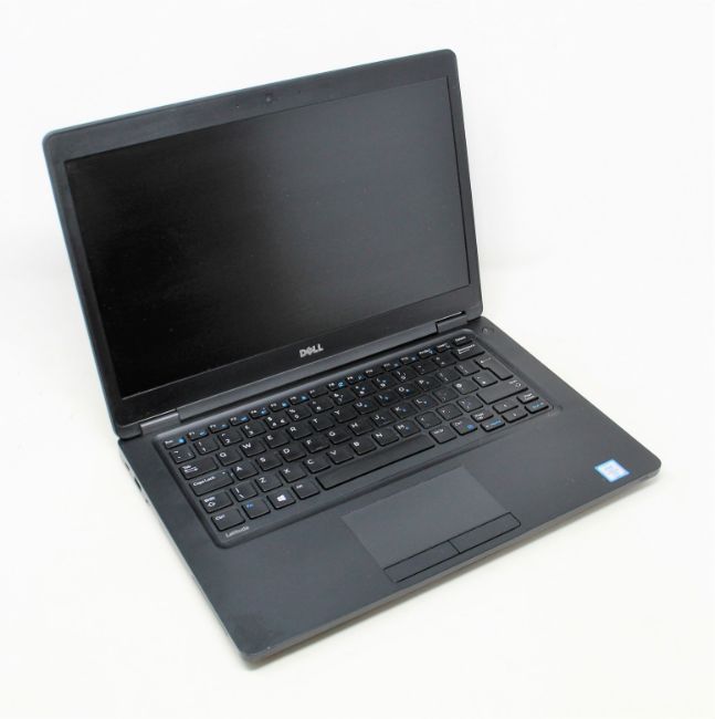 A used 14" Dell Latitude 5480 Laptop in black with intel i5-6300U 2.40GHz CPU, 8GB RAM, 250GB SSD. Windows 10 Installed.