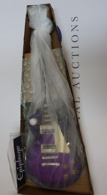 A boxed as new Epiphone Les Paul classic worn in purple (Model: ENLPCWVPNH11).