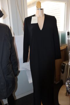 An as new Mark Kenly Domino Tan Demetra long V-neck dress with buttoning in black (Size 34).