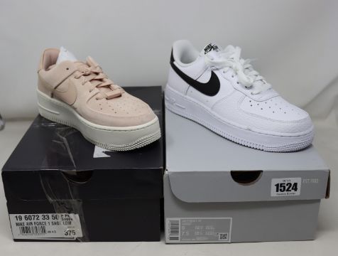 Two pairs of as new Nike trainers; Air Force 1 Sage Low (UK 4.5) and Air Force 1 '07 (UK 5.5).