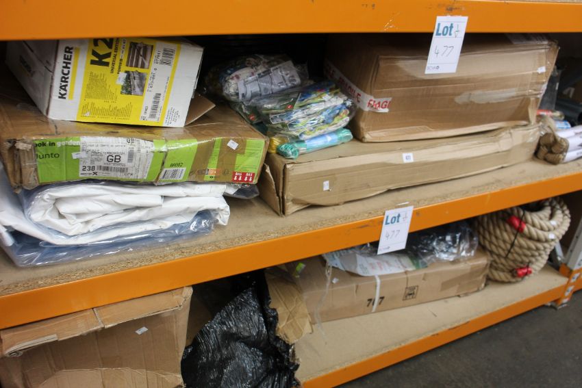 A large quantity of garden and related items to include a Cook In Garden fire pit, a Brabantia washing line, gardening gloves and a greenhouse cover.
