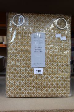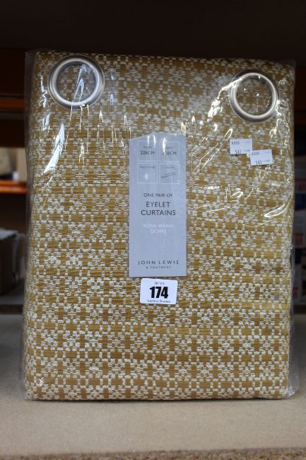 A pair of as new John Lewis & Partners Rona weave ochre eyelet curtains (RRP £180.00).