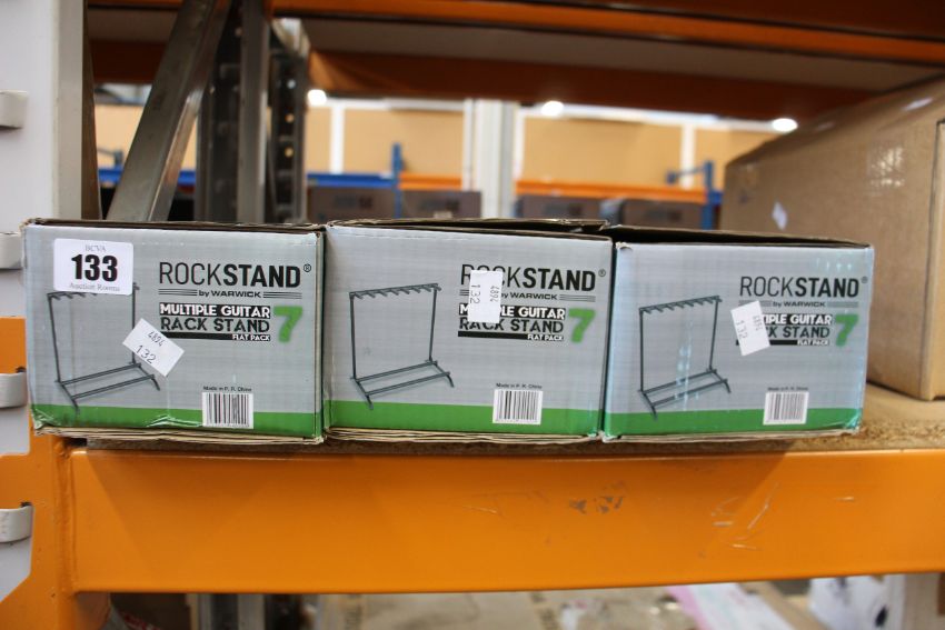 Three boxed as new Warwick Rockstand RS209882 flat pack multiple guitar stands.