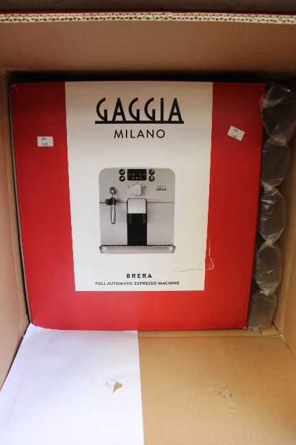 A boxed as new Gaggia MIlano Brera espresso coffee machine.