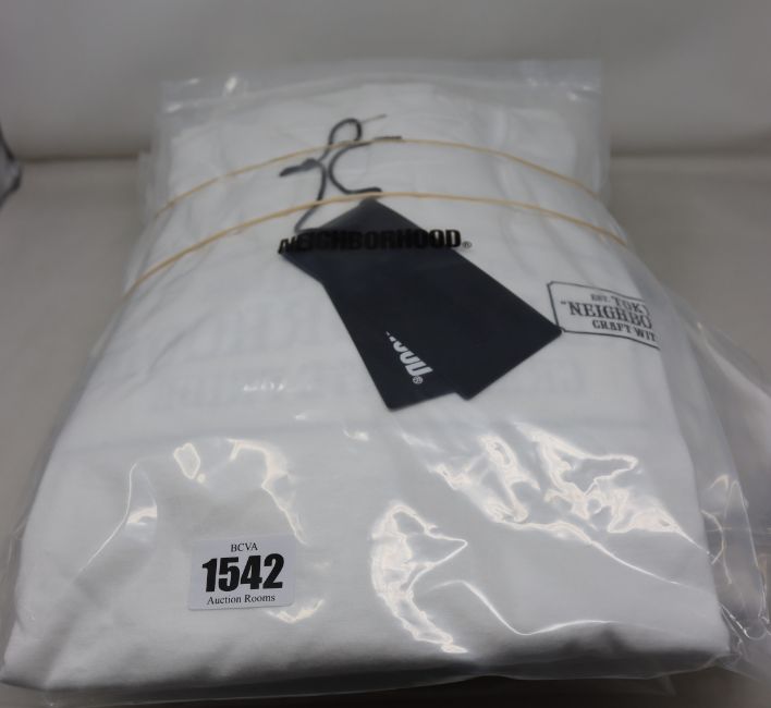 Eleven as new Neighbourhood Bar & Shield T-shirts in white (3 x S, 4 x M, 3 x L, 1 x XL).