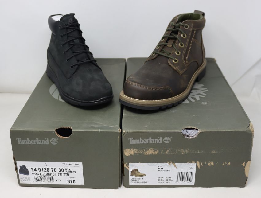A pair of a new Timberland Larchmont chukka (UK 8) and youth's Timberland Killington boots (UK 3.5).