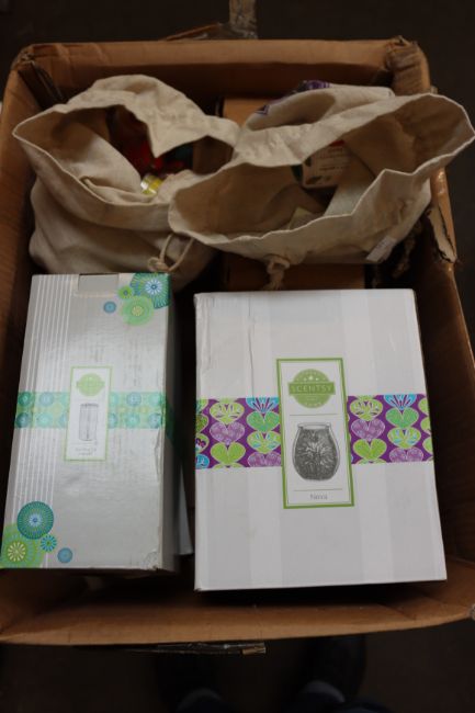 A quantity of Scentsy items to include Scentsy home nova, wax melts and other related items together with a Yankee candle in beach escape (411g jar).