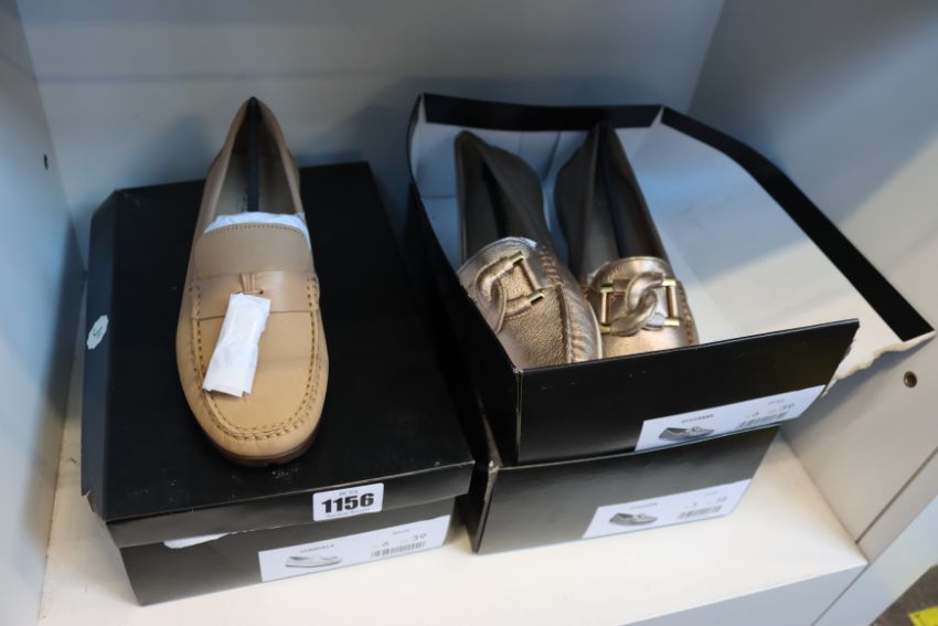 Two pairs of as new Jones Bootmakers Goldhawk loafers (UK 5, 6) and a pair of Glendale loafers (UK 6).
