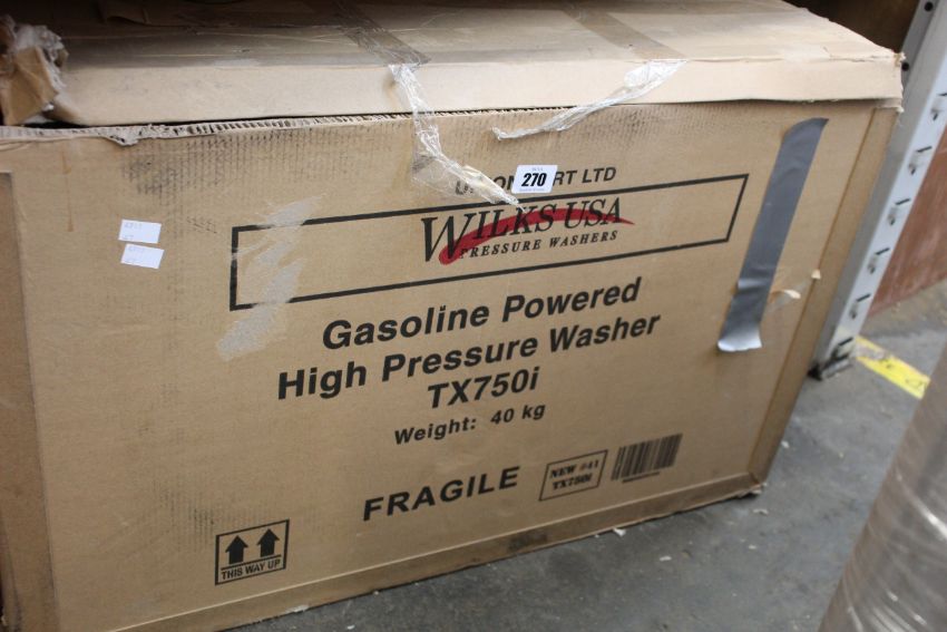 A boxed Wilks USA TX750i Petrol Pressure Washer.