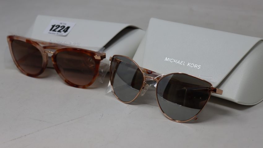 A pair of as new Michael Kors Arrowhead rose gold 0MK1052 11086G - 57 sunglasses and a Pair of Michael Kors 0MK2103 - 379111 - 56 sunglasses (Damage to outer case).