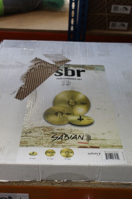 A boxed SBR 5003PE Performance Cymbal Set (14" Hat, 16" Crash and 20" Ride).