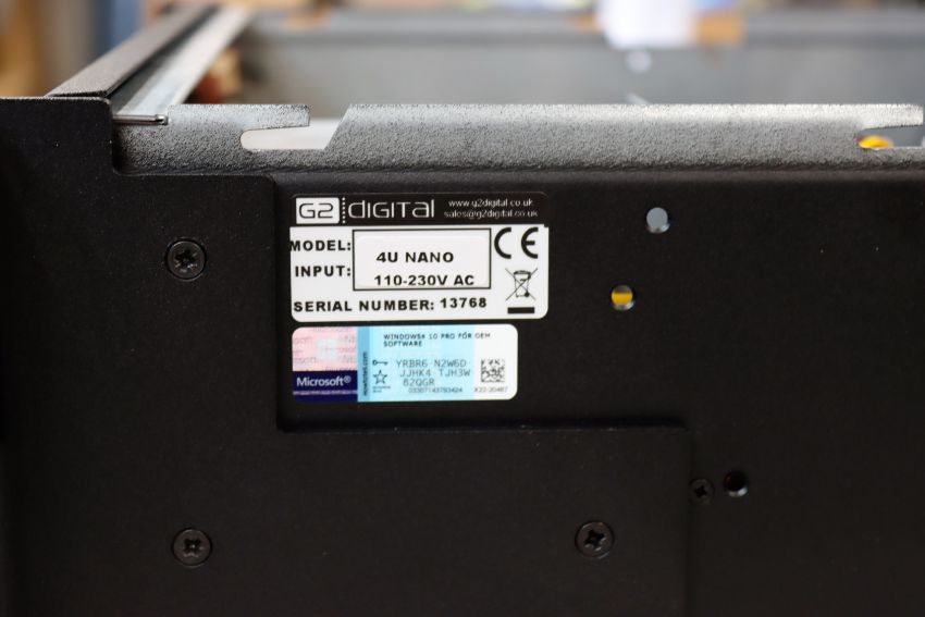 A custom build rack mountable PC with intel i7-10700K 3.8GHz CPU, 16GB RAM and 250GB SSD running windows 10
