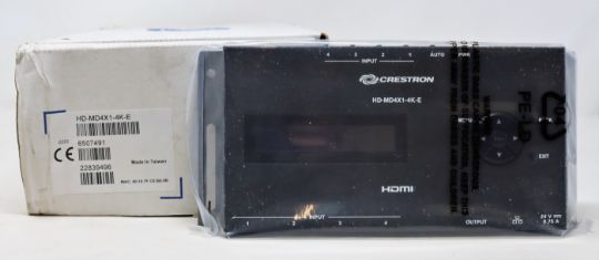 A boxed as new Creston 4 port HDMI distribution amplifier (PN: HD-MD4X1-4K-E) (Box opened) (Box damaged)