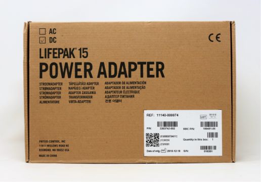 A boxed as new Physio-Control LIFEPAK 15 DC Power Adapter (P/N: 11140-000074) (Box opened, some damage to box).