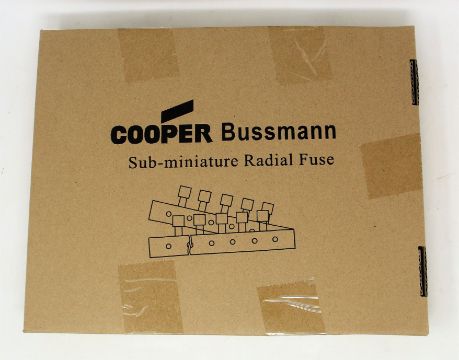 A box of 1000 as new Eaton Bussmann SR-5H-4A-AP T 4A 250VAC Sub-Miniature Radial Fuses (Box sealed).