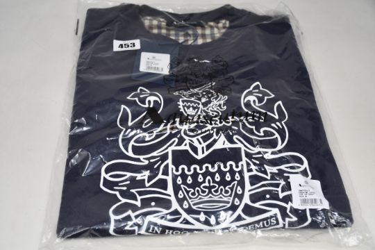 Two as new Aquascutum large crest crew neck navy sweatshirts (M - RRP £80 each).