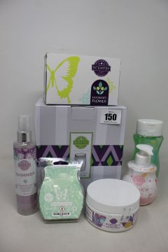 A quantity of as new Scentsy products to include three fragrance flowers; an etched core warmer and other related items (14 items).