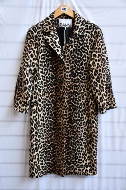 An as new Ganni F5013 linen coat in leopard (Size 34).