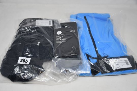 An as new Gore R3 long sleeve zip shirt (L), three pairs of Gore M light mid socks (All XL) and a pair of Gore C3 Liner short tights + (XXL).