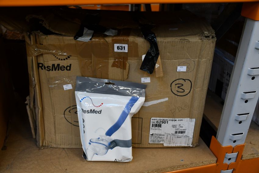 Ten ResMed AirFit P10 nasal pillow masks for CPAP and four ResMed AirFit full face masks.