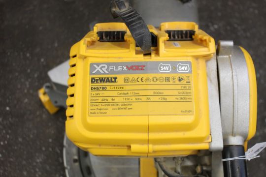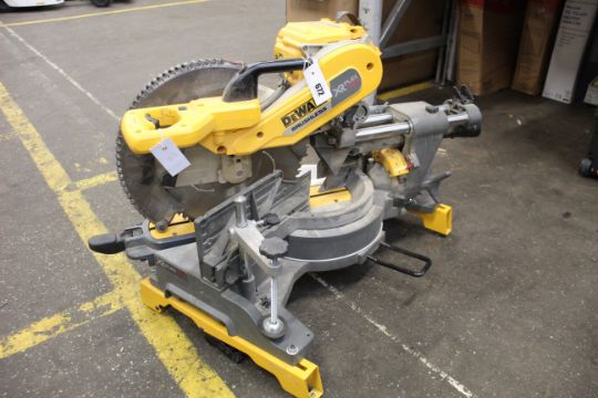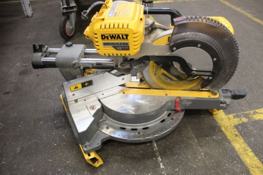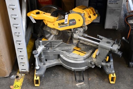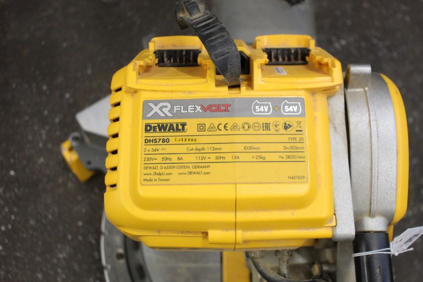 A pre-owned DeWalt DHS780 XR Flexvolt Mitre Saw (Some minor damage).
