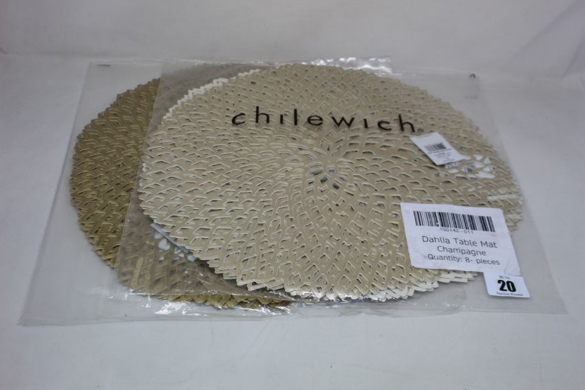 Sixteen as new Chilewich Dahlia table placemats (Six in brass, six in champagne).