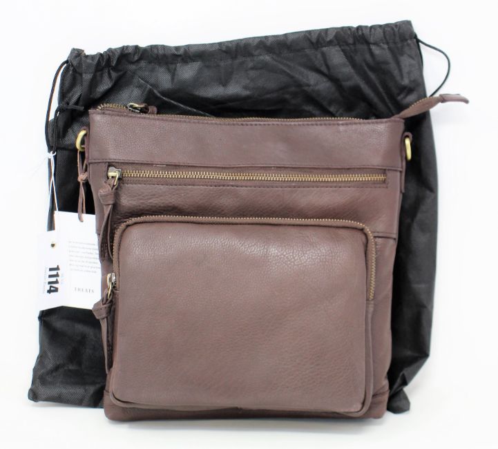An as new Treats Ellie common natural chestnut leather bag with dust cover.