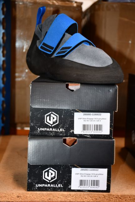 Two pairs of as new Unparallel Engage VCS rock climbing shoes (UK 8.5).