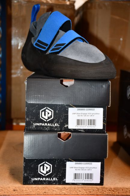 Two pairs of as new Unparallel Engage VCS rock climbing shoes (UK 7.5).