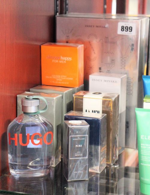 Three Bvlgari pour homme Extreme eau de toilette (100ml), a Ferrari Cedar Essence eau de parfum (100ml), a Issey Miyake l'eau d'issey pour homme box set, a Issey Miyake l'eau d'issey pour homme eau de toilette (75ml), a Mugler Pure Havane eau de toilette (100ml), a Hugo Boss eau de toilette (200ml) and a Federico Mahora Pure homme parfum (50ml).