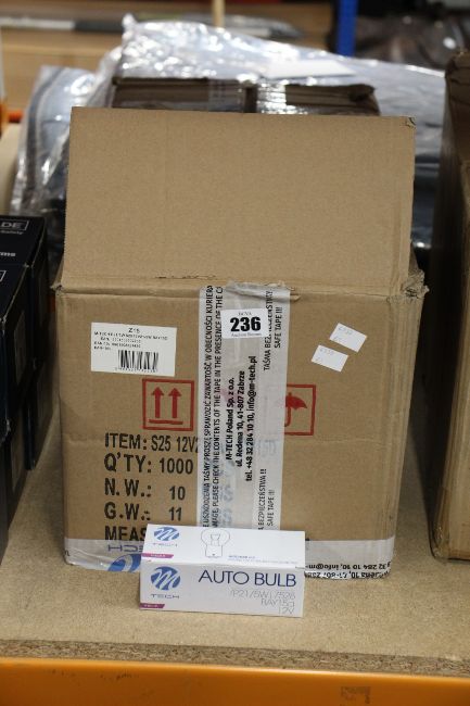 One hundred boxes of ten as new MTECH Halogen Bulbs 12V BAY 15d P21 / 5W Blister.