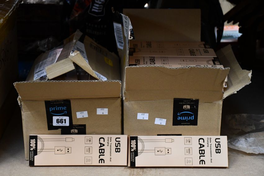 A quantity of USB data transmission and fast charging cables (Approximately 100 items).