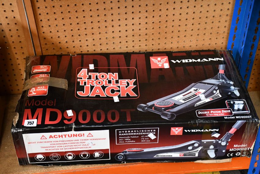 A Widmann MD9000T 4 ton hydraulic trolley jack.
