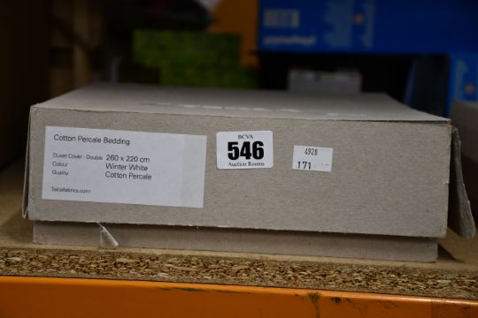 A Tekla 260 x 220cm cotton percale double bedding set in winter white.