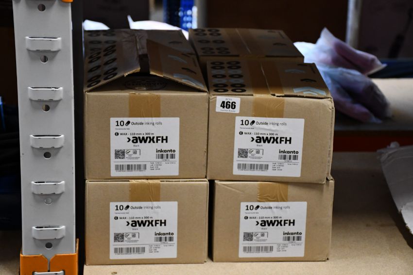 Eight boxes of ten as new Inkanto AWX FH resin enhanced wax thermal transfer ribbons - 110mm x 300m (T47661IO).