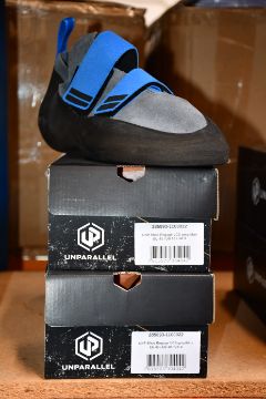 Two pairs of as new Unparallel Engage VCS rock climbing shoes (UK 5.5).