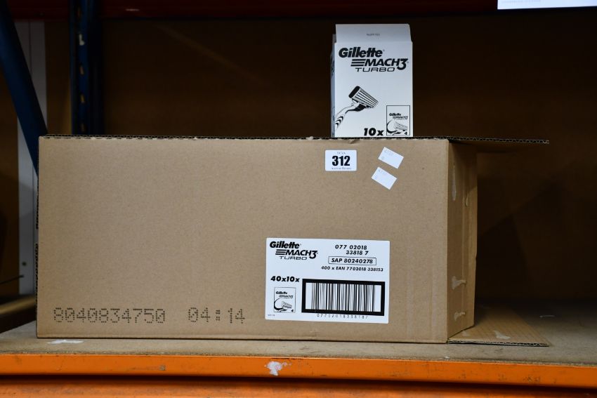Forty boxes of ten Gillette Mach3 Turbo razor blades (4 pack).