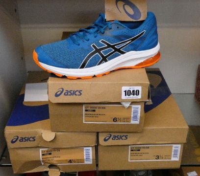 Three pairs of kids Asics GT-1000 GS trainers (UK 2.5, 3.5, 5.5).