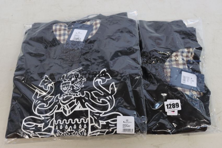 Two as new Aquascutum large crest crew neck black sweatshirts (L - RRP £80 each).