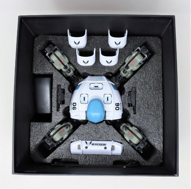A boxed Reach Robotics Mekamon educational robot in white. (possibly pre-owned) (box damaged).