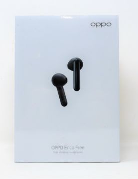 A boxed as new pair of OPPO Enco Free True Wireless Bluetooth Earbuds in Black (M/N: ETI02) (Box sealed).
