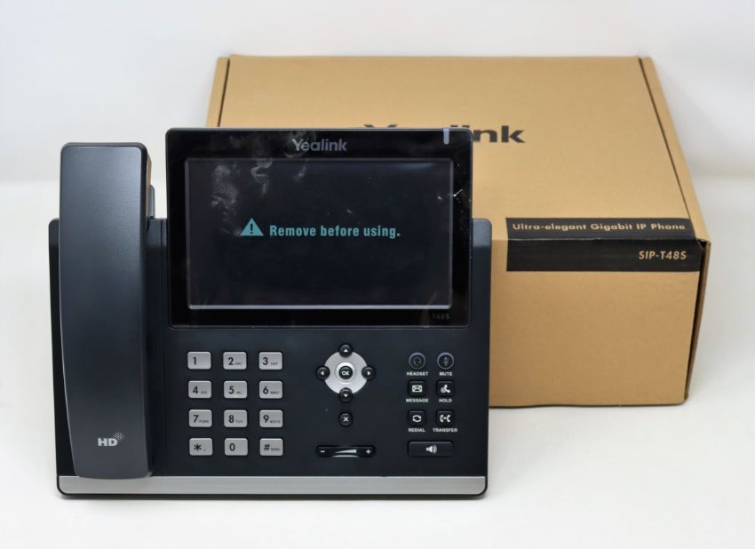 A boxed as new Yealink SIP-T48S Ultra Elegant Business IP Phone in Black (Box opened).